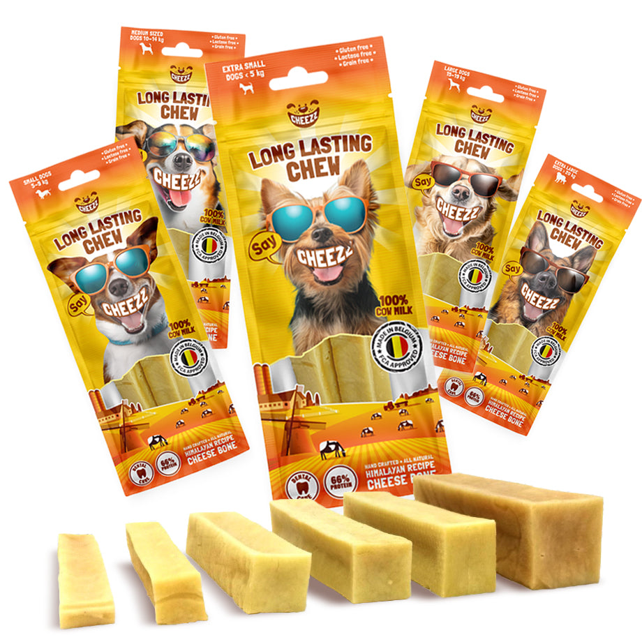 Give your dog a deliciously long-lasting chew with Cheezz Himalayan Dog Chews, made from 100% Belgian Cow Milk using a traditional Himalayan recipe. These durable, high-protein chews are low in fat, gluten-free, and lactose-free, making them easy to digest and safe for sensitive stomachs.