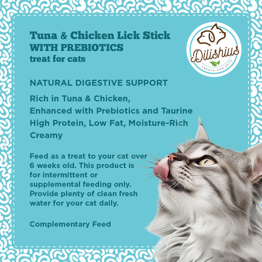 CATS go Crazy for Dilishius lick stick Tuna a tasty cat treat that the nation's cats can't get enough of!